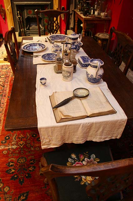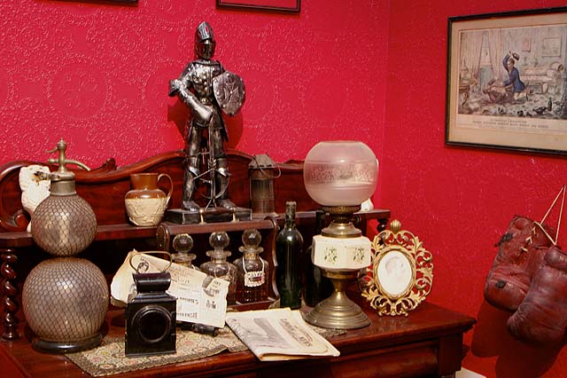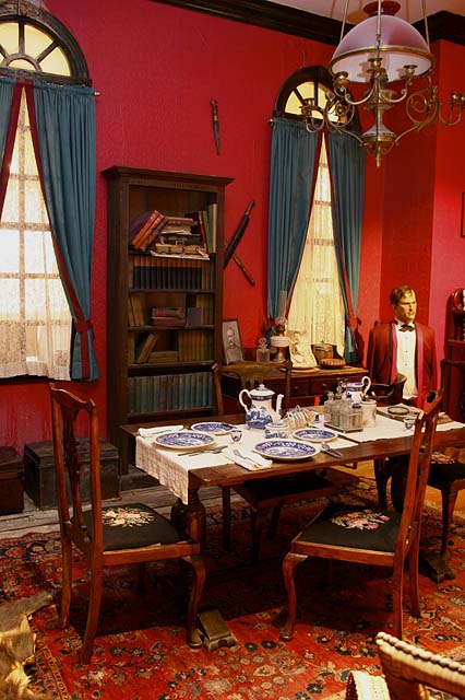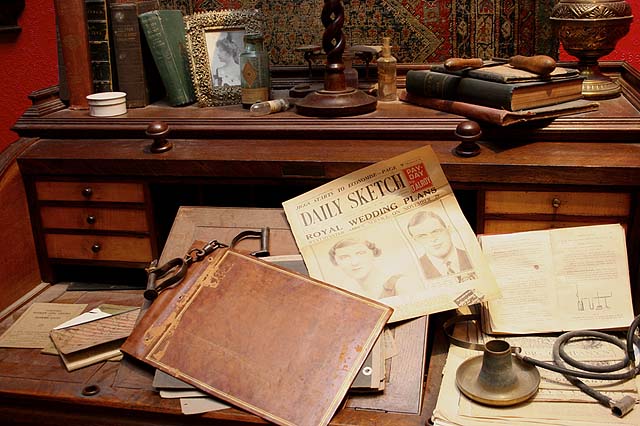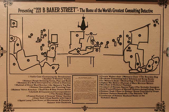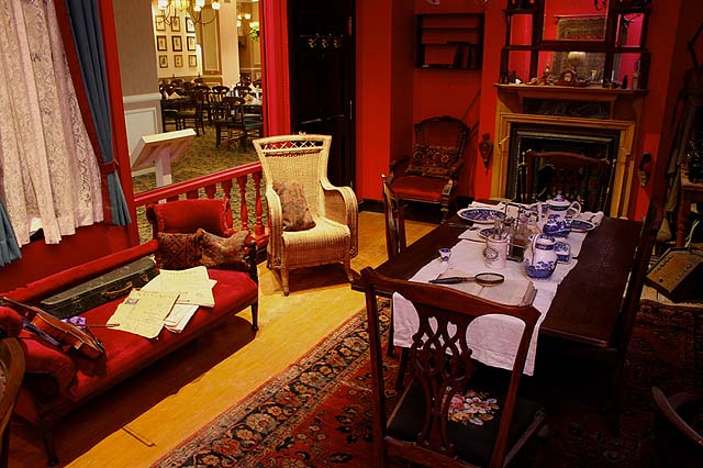 All the contents of the room are authentic English antiques, bought in London and used to recreate in precise detail The Room, exactly as if on a foggy morning in 1895, Sherlock Holmes and Dr. Watson had dashed out in the midst of breakfast to solve yet another baffling case of crime and mystery.